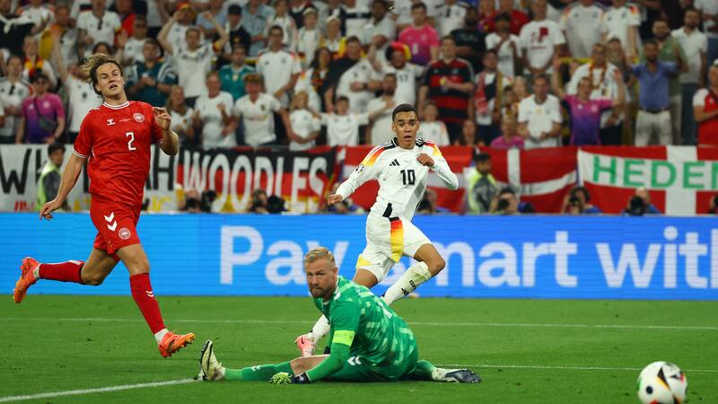 En Dortmund, el anfitrión vence 2-0 a Dinamarca y se instala en los cuartos de final. Anotaron Havertz y Musiala para los germanos, que aguardan por España o Georgia. El duelo fue interrumpido en el primer tiempo por lluvia, relámpagos y granizo.