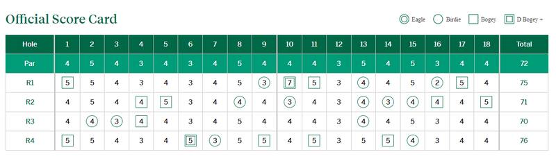 Una de las pocas alegrías del día llegó en el hoyo siete, cuando logró restar un golpe a su tarjeta, algo que lamentablemente fue un hecho aislado. Volvió a las banderas sobre par en la nueve, once y catorce, opacando la buena jornada sabatina donde logró quedar entre los primeros 25. El birdie en el 16 camufló una actuación que sin duda deja al chileno cabizbajo. Pudo haber sido mejor, pero de todas formas se queda con el consuelo de haber hecho historia el día viernes.