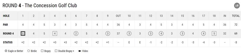 El sábado había sido ingrato para el talagantino. Finalizó con +1 y su score acumulado, que se mantuvo en -3 los dos primeros días de competencia, bajó a -2, en una pasada en la que incluso sufrió con un double bogey y que le hizo descender desde el puesto 20 hasta el 20. El nivel de Joaco estaba lejos del que venía mostrando y que lo tuvo dos veces cerca de los triunfos en Hawai. Su trabajo con el putt claramente no era el mejor y el objetivo en la última jornada era dejar atrás esos opacos números.