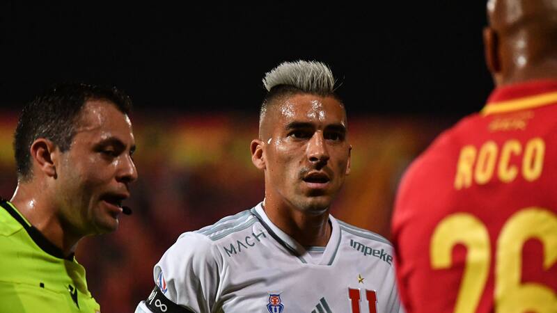 El atacante de la U se enfrascó en una discusión con el defensor de Unión Española; el juez Diego Flores tuvo que separarlos.