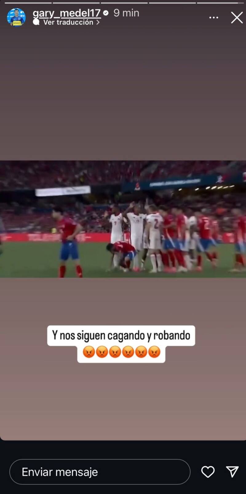 “Y nos siguen cagando y robando”, escribió el formado en Universidad Católica. El texto fue acompañado de una serie de emoticones de enojo. No es para menos, el primer tiempo en Orlando estuvo lleno de polémicas.