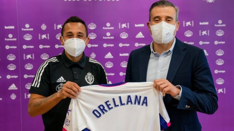 Fabián Orellana se muestra con la camiseta del Valladolid. Hace varias semanas que el chileno había alcanzado un acuerdo con el equipo que es propiedad del brasileño Ronaldo. El 20 de julio, el club anunció el acuerdo, pero faltaba el rito de verlo ataviado con los colores blanquivioletas. El delantero formado en Audax Italiano llega precedido de sus buenas campañas en el Eibar y deja entrever ambiciosos objetivos, que van de la mano de lo que pretende el ex astro del Scratch.