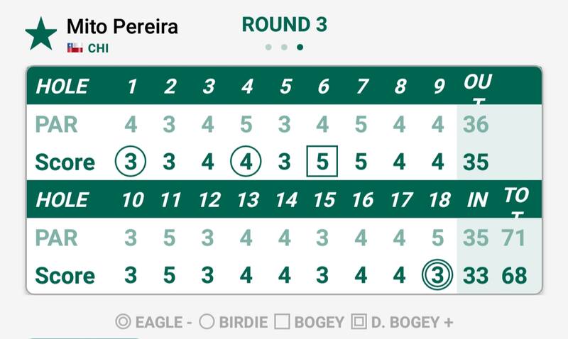 Es que Mito anotó 68 golpes en la tercera ronda producto de un bogey, dos birdies y un eagle en el hoyo 18, que dejaron al nacional 20º, a siete golpes de los líderes, el francés Paul Barjon y el estadounidense Lee Hodges.
