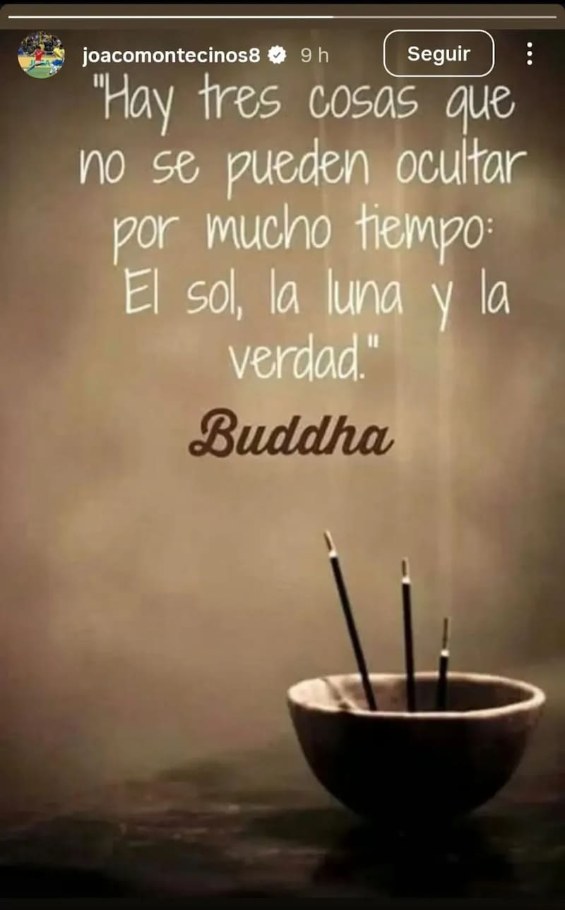 Solo minutos después de esto, Joaquín Montecinos ocupó sus redes sociales, enviando un mensaje que se podría considerar a Paqui como destinatario, pues durante la estadía del DT en los celestes, el extremo quedó marginado por la posibilidad de que partiera a Colo Colo, situación que al final no ocurrió.
