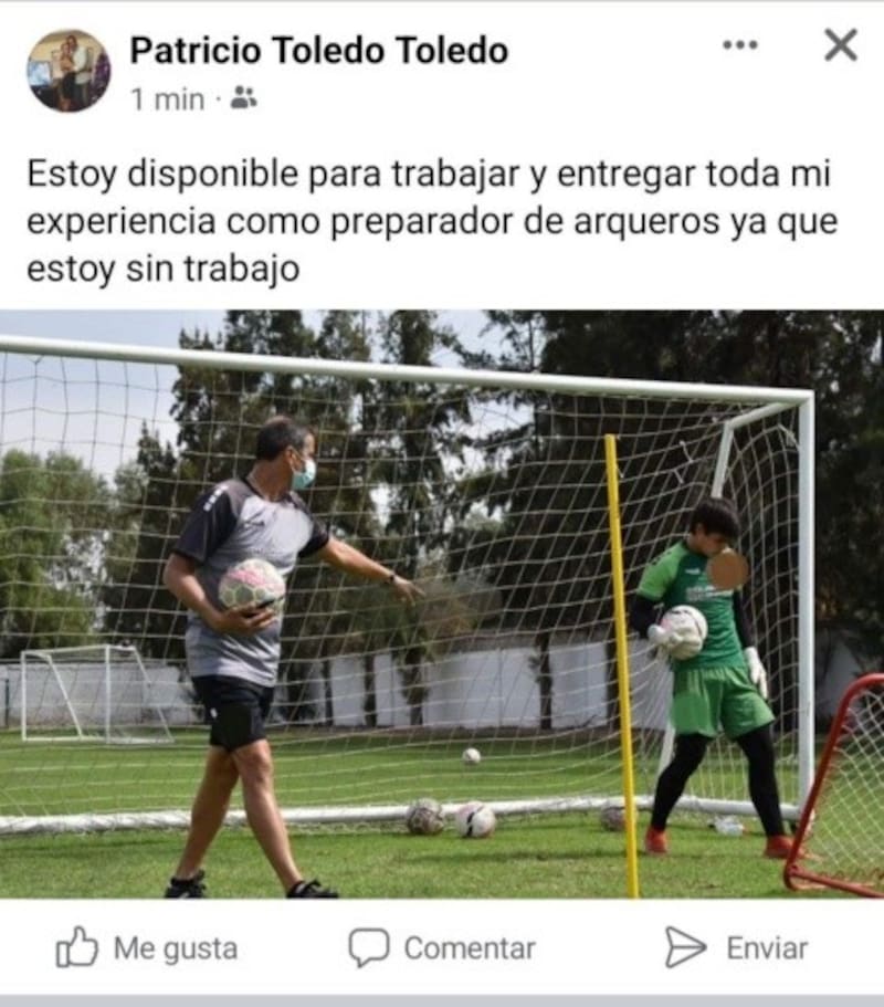 Hoy, el Pato busca trabajo. Y lo hace a través de las redes sociales. Concretamente, de Facebook. En esa plataforma, ofrece sus servicios como preparador de guardametas, la derivación laboral que tomó su carrera deportiva. “Estoy disponible para trabajar y entregar toda mi experiencia como preparador de arqueros, ya que estoy sin trabajo”, consigna la publicación, que lo muestra, precisamente, colaborando en la formación de un golero.