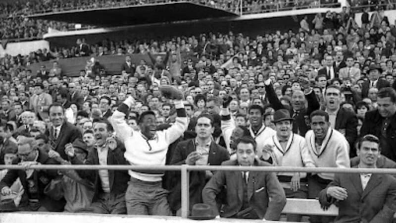 El Pelé hincha, tal como cuando tenía el balón en los pies, era un tipo alegre. De hecho, no le complicaba comportarse efusivamente para celebrar las hazañas de sus compañeros, liderados por Garrincha, su eterno socio en el ataque del combinado, y que, pese a su notoria ausencia, aún tenían talento para derrochar hasta llegar a conseguir el segundo título de la brillante historia futbolística del país más grande de Sudamérica. De hecho, la imagen que da origen al homenaje lo muestra celebrando la victoria sobre Checoslovaquia, que coronó al Scratch.