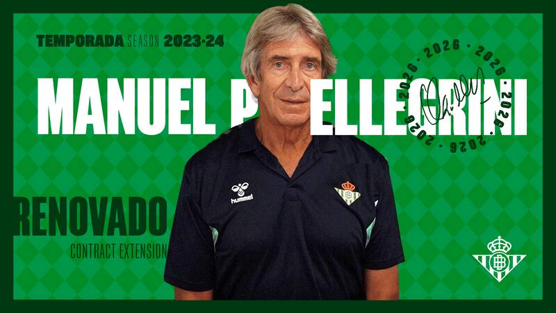 “El Real Betis Balompié y Manuel Pellegrini han renovado su vinculación para una temporada más. De esta manera, el entrenador chileno dirigirá al equipo verdiblanco hasta junio de 2026″, comienzan diciendo en un comunicado oficial.