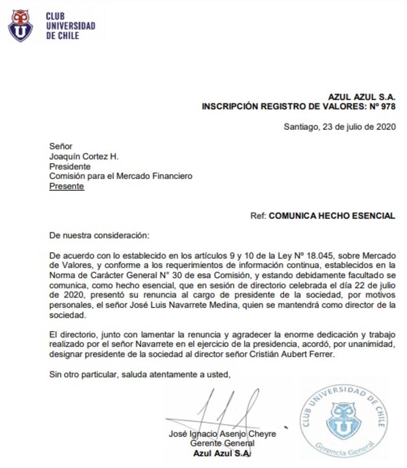 Apenas tres meses después, la puerta que en 2015 cerró, se abrió totalmente: ahora asumirá como el nuevo timonel del Chuncho en reemplazo del saliente José Luis Navarrete. La tarde de este jueves Azul Azul envió el hecho esencial a la Comisión para el Mercado Financiero.