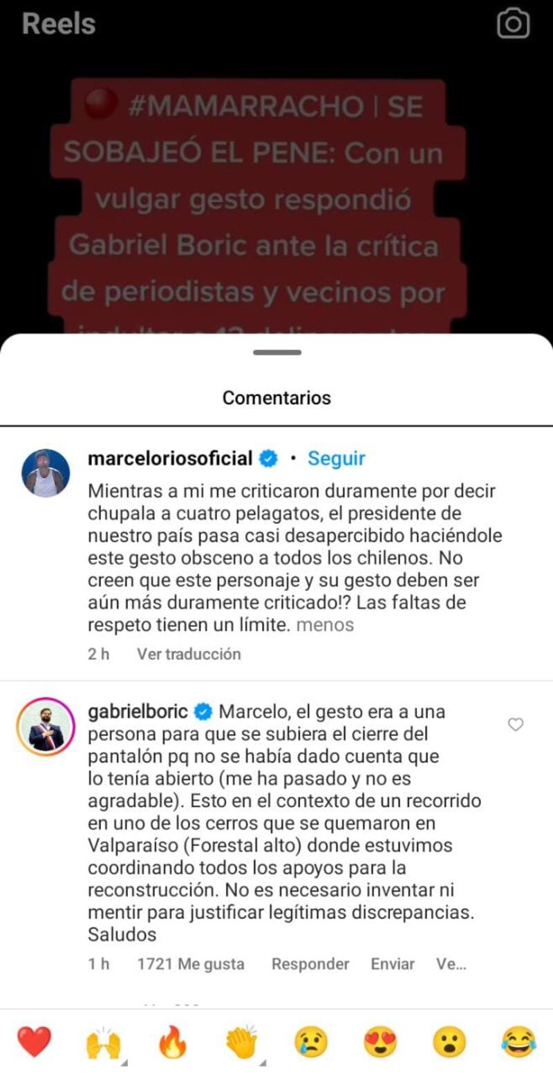 Gabriel Boric explica el gesto del pantalón que se ha transformado en viral en las últimas horas y que, ciertamente, ha generado una alta controversia en las redes sociales. En Instagram, una de esas plataformas, el que lo cuestiona es Marcelo Ríos. Y es al ex número 1 del tenis mundial, el único chileno que ha ocupado ese sitial, a quien el Mandatario le aclara la situación. Eso sí, sin dejar la posibilidad de reprocharle su posición.
