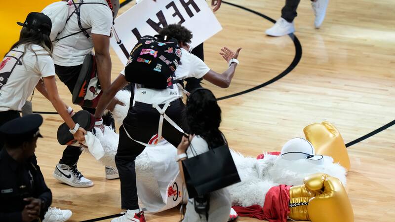 Claro que de las risas se pasó luego a la preocupación, pues la persona a cargo de dar vida al corpóreo debió ser trasladada a un centro asistencial para tratar las lesiones, aunque tras algunos momentos el propio equipo de Miami emitió un comunicado en el que afirmaban que el afectado había sido enviado a casa a recuperarse.