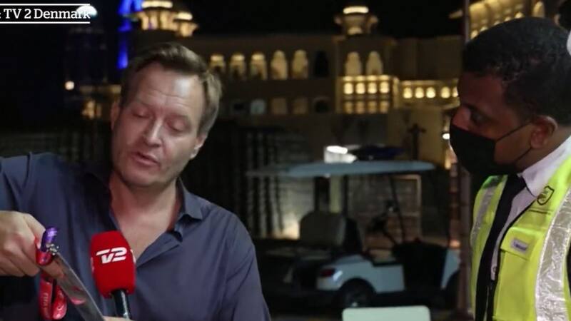 El profesional informaba en vivo para su país cuando un grupo de vigilantes descendió de un vehículo y le impidió realizar su trabajo. Dinamarca es uno de los países que ha manifestado aprensiones respecto de los abusos laborales y contra los Derechos Humanos en la organización y de la discriminación que se ejerce en el país anfitrión.