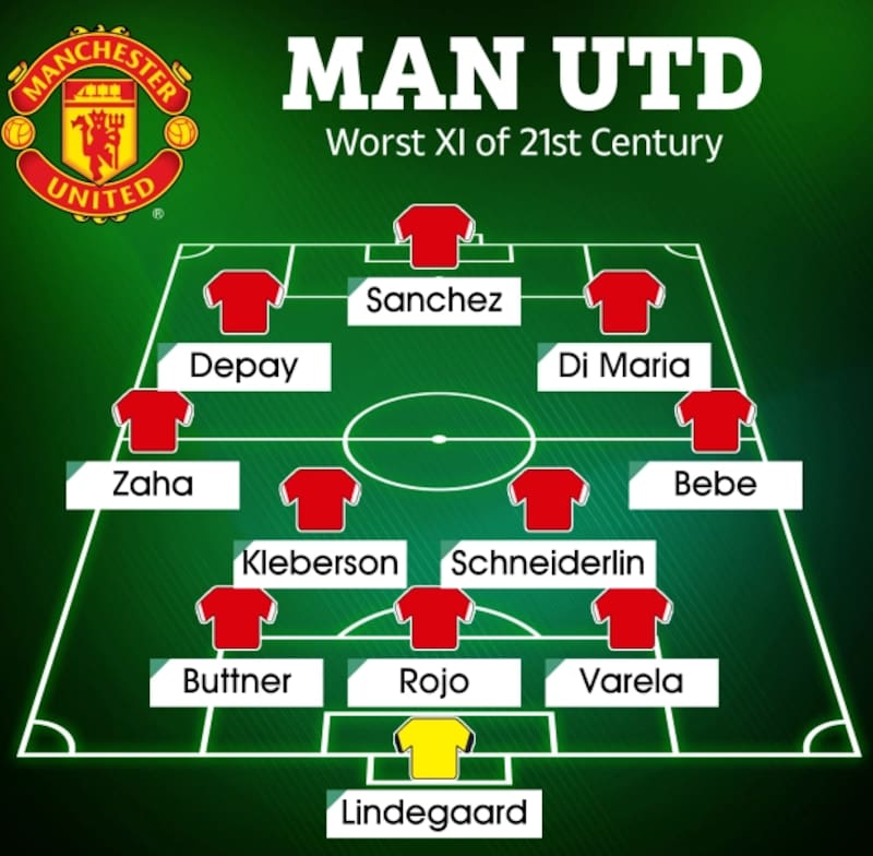 Alexis fue posicionado como centro delantero en la vergonzosa formación, conformando un tridente junto a Depay por la izquierda y Di Maria por la derecha. El resto del equipo lo componen el portero danés Anders Lindegaard, con tres defensas por delante: Guillermo Varela, Marcos Rojo y Alexander Buttner. En el mediocampo se forman Bebe, Morgan Schneiderlin, Kleberson, y Wilfried Zaha.