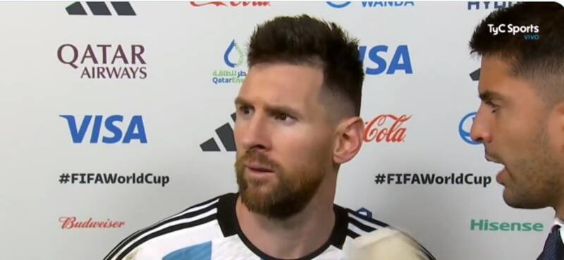 La reacción del astro argentino mientras concedía una entrevista después del partido ante Países Bajos da, ahora, impulso a una serie de negocios. En los sitios electrónicos hay una variada oferta de poleras con la frase.
