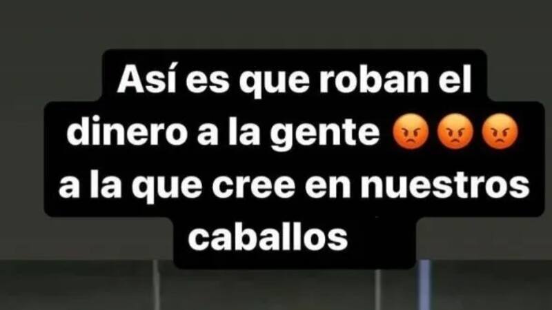 Para justificar su queja, el jugador de fútbol publicó una imagen del momento en que su equino traspasa la meta, seguido de Kid Mambito, caballo al que se le adjudicó la victoria. “Le roban el dinero a la gente que cree en los nuestros”, se queja Vidal. Sobre la misma, agrega: “Que weones más las ladrones”, etiquetando a la cuenta oficial del Hipódromo.