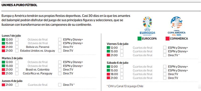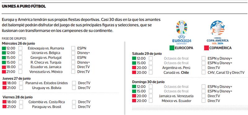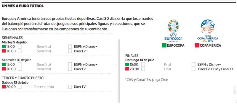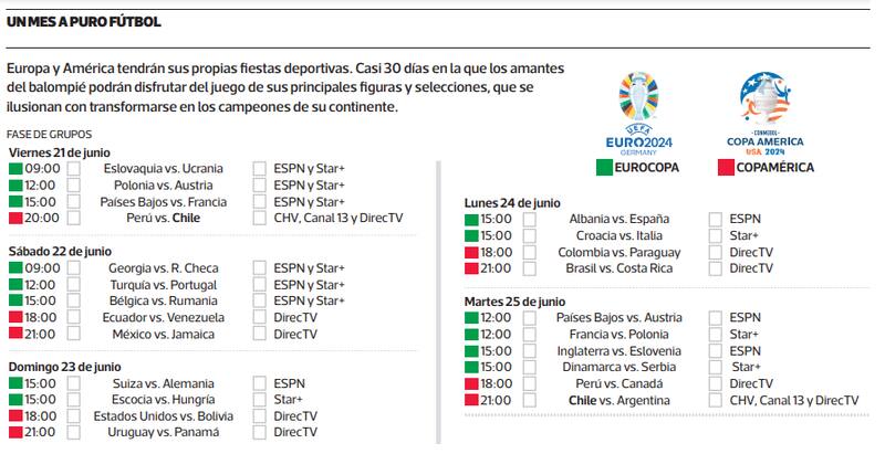 Más allá de la polémica, lo cierto es que la Eurocopa y la Copa América traen partidos que prometen quedar en la historia. El Deportivo trae el calendario completo. Para el deleite de los espectadores, serán, en total, 83 partidos en 30 días.