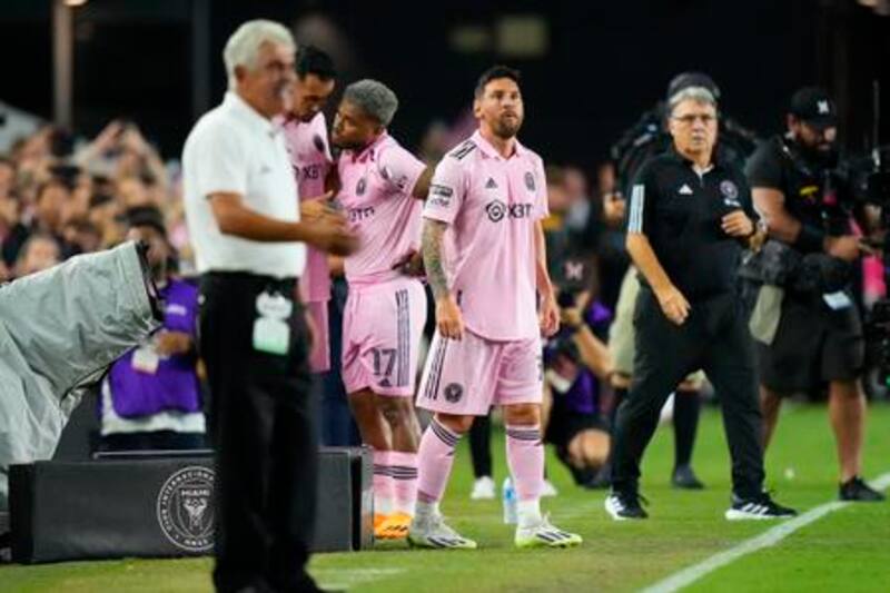 Apenas inició el segundo tiempo, Gerardo Martino mandó a calentar a la Pulga, lo que provocó la locura del Lockhart Stadium, que al notar esto comenzó a gritar el nombre de Messi. A los 50′, Leo se puso la polera rosada del club y, tres minutos después, ingresó a la cancha junto Busquets.