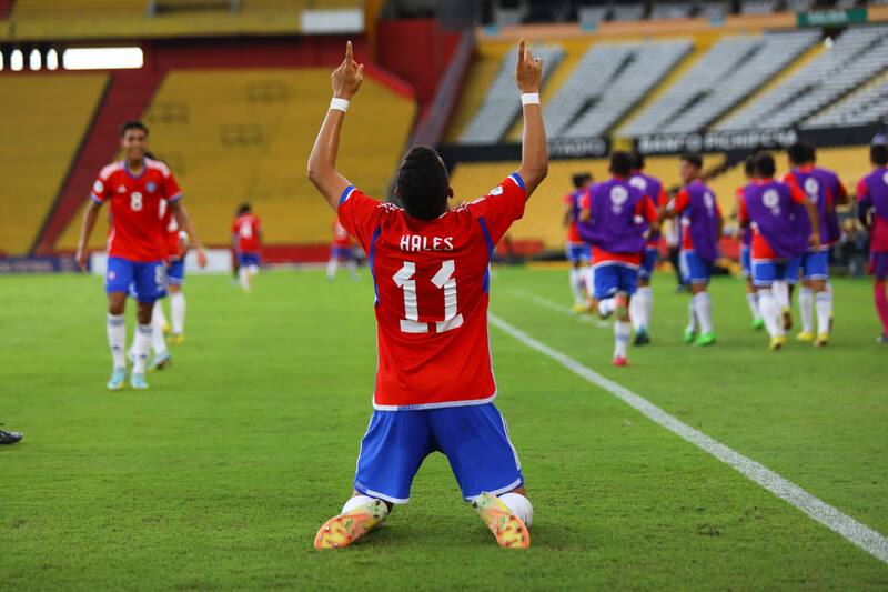Alejandro Hales se arrodilla y apunta con ambos índices al cielo después de anotarle a Uruguay. Apenas ha pasado la media hora del encuentro entre la Sub 17 que dirige Hernán Caputto y el delantero de Palestino define con un zurdazo lleno de seguridad para poner en ventaja a la escuadra de Hernán Caputto. Dicen quienes lo conocen que esa condición no es casual. Que, de alguna forma, refleja la motivación que le ha acompañado durante toda su vida: la del sueño de convertirse en futbolista profesional.