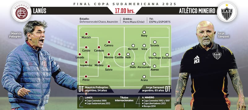 El exseleccionador nacional tiene la gran chance de convertirse en el primer técnico en ganar dos veces la Sudamericana, con dos elencos distintos. Una consagración en Paraguay sería el ejemplo ideal para un reimpulso de su carrera en las bancas, luego de una serie de pasos en falso que lo alejaron de la elite. Si el Mineiro supera al Granate, sería la primera corona de Sampaoli en un lustro. Desde 2020 que no alcanza un trofeo, cuando obtuvo un campeonato estadual con su actual elenco.