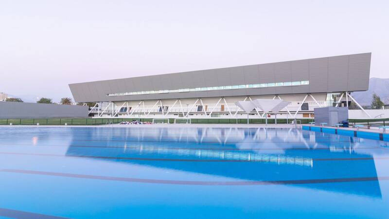 El nuevo proyecto contempló una inversión de 32 mil millones de pesos, pero finalmente superará los 50,5 mil millones, y considera el diseño de un volumen que cubrirá la piscina exterior. En se aspecto, se remodelará el centro acuático existente, y se implementarán nuevos camarines, oficinas, primeros auxilios, bodegas, zona de prensa, sala de uso múltiple y graderías. Entre ambas estructuras habrá un patio interior de área verde exclusivo para los deportistas.