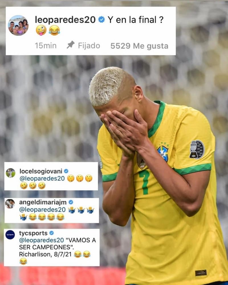 “Tchau hermanitos”. Con esa frase y el gráfico gesto con la mano, Richarlison junto a sus compañeros Matheus Cunha y Reinier Jesús se habían mofado de los argentinos. En esa oportunidad, el mazazo de vuelta lo aportó Leandro Paredes, quien le contestó con una frase incontrarrestable. “¿Y en la final”, le retrucó el volante del PSG.