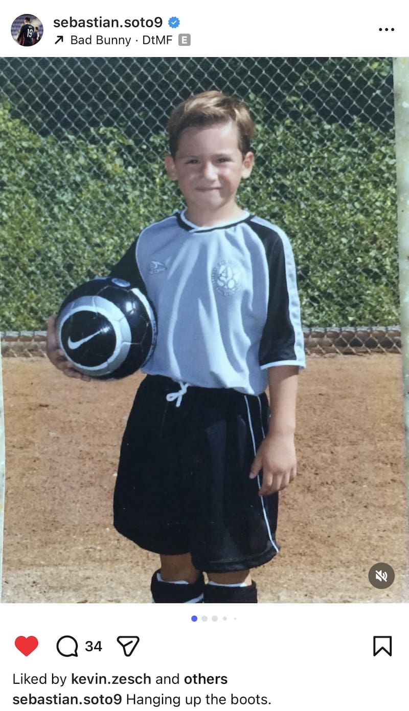 Sorpresa. A los 25 años de edad, el delantero estadounidense de raíces chilenas Sebastián Soto decidió poner fin a su carrera. Arrancando el año, anunció la decisión de retirarse a través de sus redes sociales, compartiendo un mensaje repasando su etapa deportiva. “Cuelgo los zapatos. El juego me dio más de lo que nunca esperé. Agradecido con todos los que formaron parte del viaje. Gracias, gracias. Siguiente capítulo”, posteó el atacante, dando a conocer la determinación.