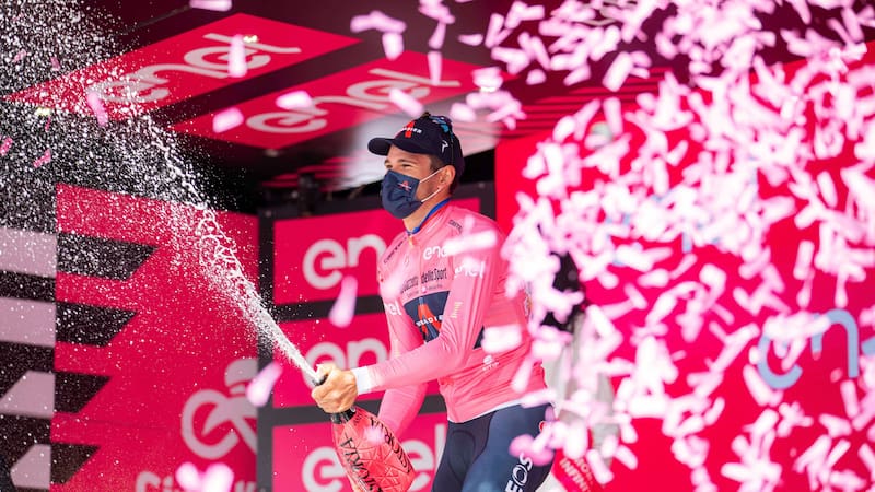 En cuanto a los favoritos, Joao Almeida (Deceuninck-Quick Step) finalizó en el cuarto puesto, a 17′'. Por su parte, el belga Remco Evenepoel, de la misma escuadra, concluyó en el séptimo lugar, a 19′'. Simon Yates (BikeExchange) y Egan Bernal (INEOS), dos de los máximos candidatos al título, cerraron a 38′' y 40′', respectivamente.