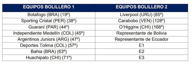 O’Higgins de Rancagua estará en el bombo 2, por su mala posición en el escalafón respecto a los otros (166º). Los celestes sí se exponen a jugar ante un rival de más peso. Junto al denominado Capo de Provincia están Liverpool de Uruguay, Carabobo, representantes de Bolivia y Ecuador a definir, y los tres que ganen en la fase 1.