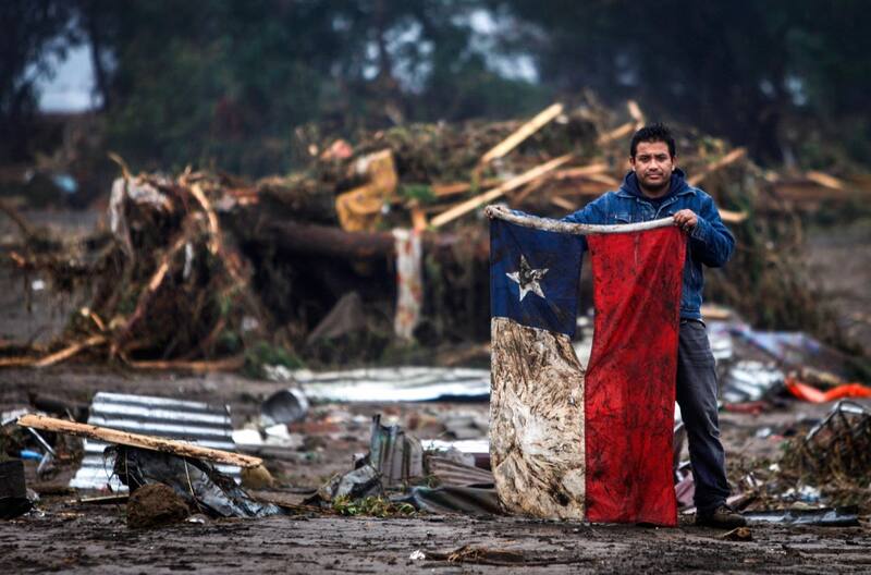 El 27 de febrero de 2010 se vivió una de las catástrofes más terribles que han azotado a Chile. Esa noche, un terremoto 8.8 en la escala de Ritcher sacudió las costa centro-sur del país. En esa jornada, además, se dio una emotiva imagen entre los escombros. Fue Bruno Sandoval, en Pelluhue, Región del Maule, localidad que fue arrasada por el tsunami, quien dio la vuelta al mundo inmortalizado en una imagen donde levantaba la bandera nacional de entre los escombros. Desde el mundo del fútbol se realizaron diversos gestos para enviar fuerzas y ayuda a la nación.