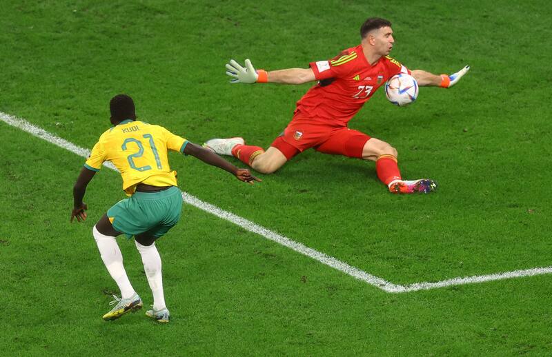 “Messi desperdició dos ocasiones claras al final, pero fue el suplente de Australia, Garang Kuol, quien hizo que los corazones se aceleraran en el estadio cuando se encontró solo en el área y disparó en el tiempo de descuento un remate que Emi Martínez atajó brillantemente”, resaltan sobre la última acción del cotejo.