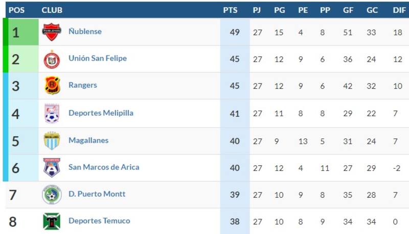 Quien termine tercero pasará a los playoffs de la liguilla junto al cuarto, quinto y sexto (hoy son Melipilla, Magallanes y San Marcos). Sin embargo, Puerto Montt (7°) y Temuco (8°) aún tienen opciones de sobrepasar a algunos de esos elencos, por lo que todo dependerá de la última jornada, programada en su totalidad para este domingo a las 10 de la mañana.