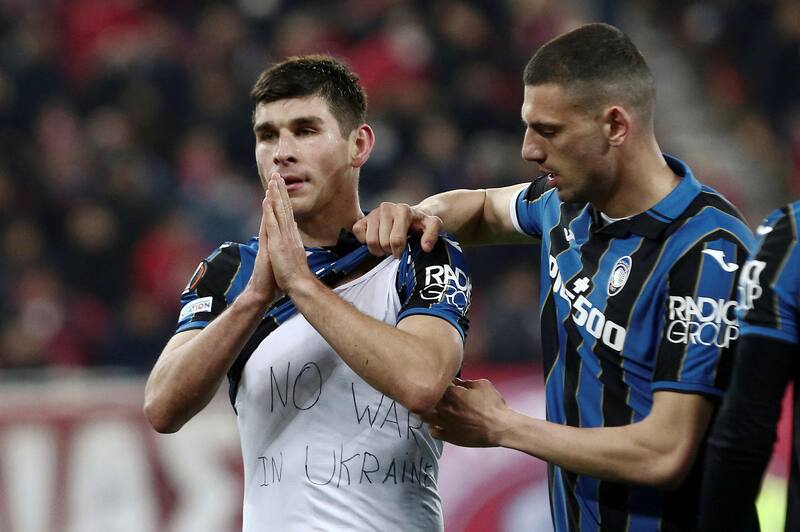 Ayer, durante la jornada de la Europa League, el futbolista ucraniano Ruslan Malinovskyi anotó para el Atalanta italiano y festejó mostrando un mensaje que traía debajo de su camiseta. “No a la guerra en Ucrania”, mostró el mediocampista, juntando sus manos en señal de plegaria.
