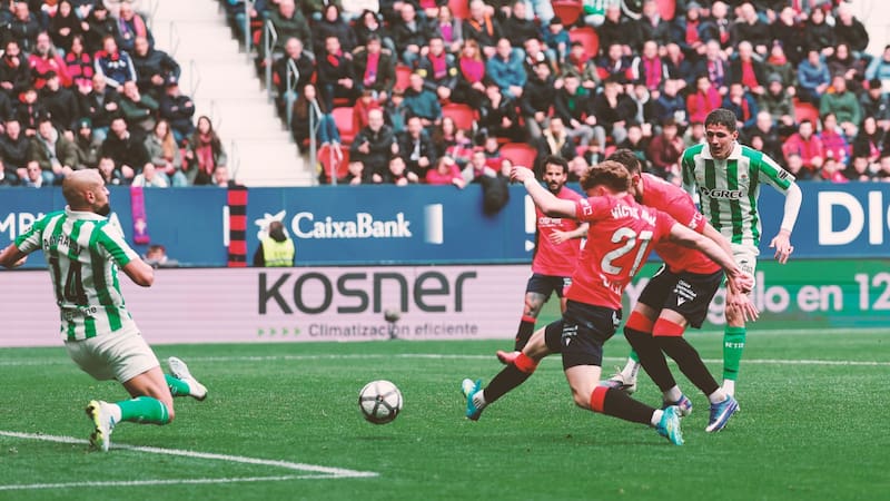 No obstante, de ahí en más, todo fue para los locales, con excepción de algunas buenas transiciones de un Betis que se replegó y buscó mantener el orden en su zaga. El Osasuna se impuso desde la intensidad y logró igualar el encuentro tras un penal de Valentín Gómez. El argentino, en su afán por despejar, pasó a llevar a Jorge Herrando. Ante Budimir (40′) lo cambió por gol antes del descanso.