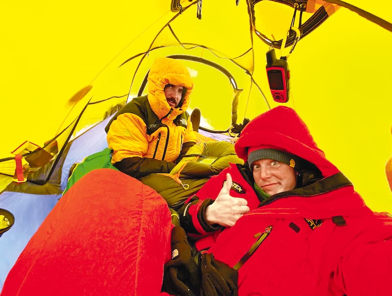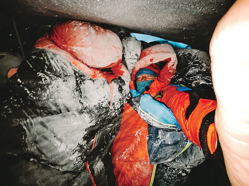 Cuando se fue, vi sus linternas, pero no me sentía bien y dije: ‘Ahora solo tengo que mantenerme caliente’. Era el segundo día que no comía, solo vomitaba, perdía mi energía, así que necesitaba bajar. Traté de hacer agua y me demoré una hora en hacer un litro; todo es complicado. Salí a orinar y luego me puse en dos sacos de dormir, con mi equipo, con -40 grados, y seguía tiritando. Yo pienso que el hecho de sentirme mal me salvó la vida, porque de lo contrario habría ido con ellos. De alguna manera necesitaba sentirme mal, aceptar esto, o de lo contrario estaría muerta.