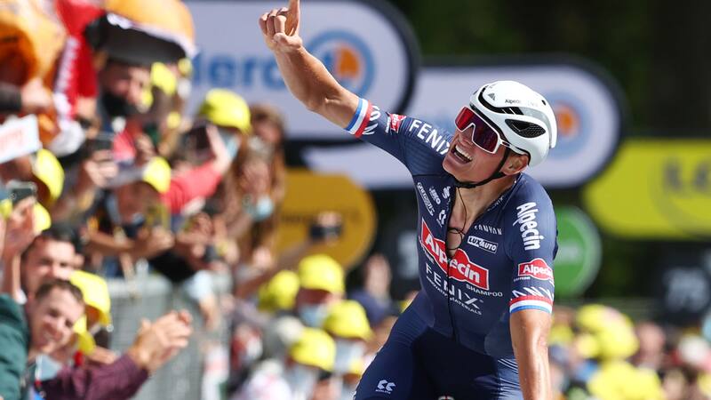 El neerlandés cruzó la meta entre lágrimas y le dedicó el logro a su abuelo, el legendario ciclista Raymond Poulidor, fallecido en 2019.