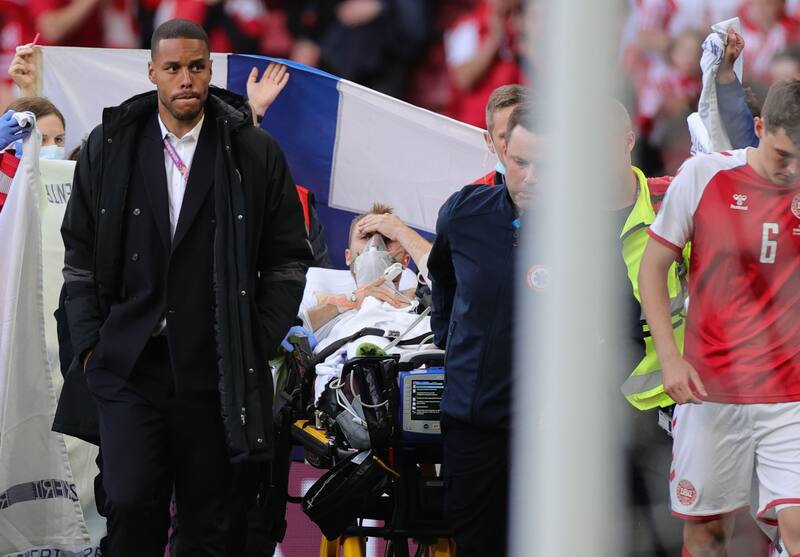 Aproximadamente en el minuto 40 del primer tiempo del partido entre Dinamarca y Finlandia, el jugador danés Christian Eriksen se desplomó súbitamente segundos después de haber intentado correr hacia una pelota larga de Pierre-Emile Højbjerg. Tras su sprint —que no fue demasiado largo ni exigente—, la transmisión televisiva lo mostró por unos segundos con dificultades para respirar. Inmediatamente después cayó al césped. Los paramédicos ingresaron de inmediato luego de que los jugadores advirtieran el desmayo del futbolista del Inter de Milán, en el costado derecho de la defensa finlandesa.