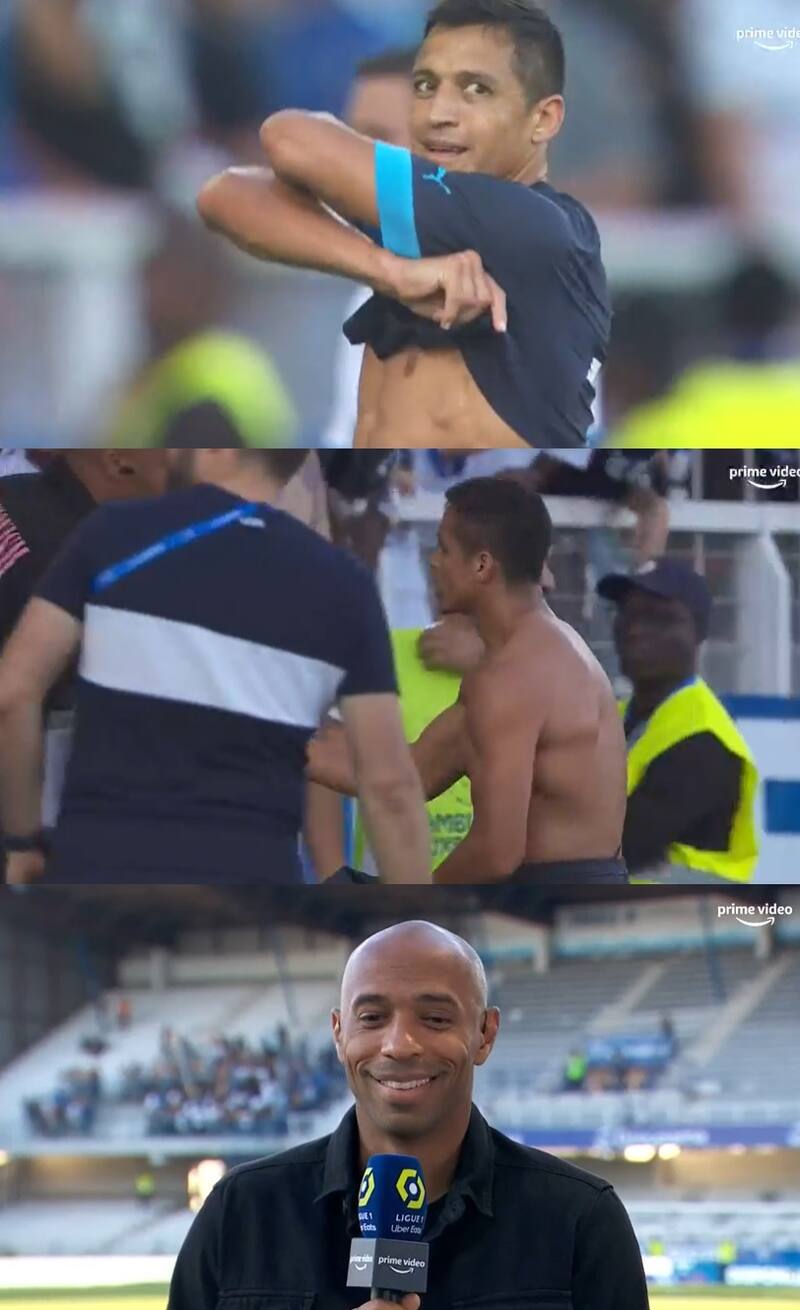 Un admirador VIP: Thierry Henry le pide la camiseta a Alexis Sánchez tras el triunfo del Olympique de Marsella