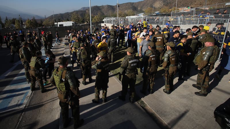 Cerca de las 15:30 horas ya se registraba presencia de hinchas visitantes en los accesos. En ese momento comenzaron a llegar los primeros vehículos con pasajeros identificados con camisetas y banderas del equipo argentino.