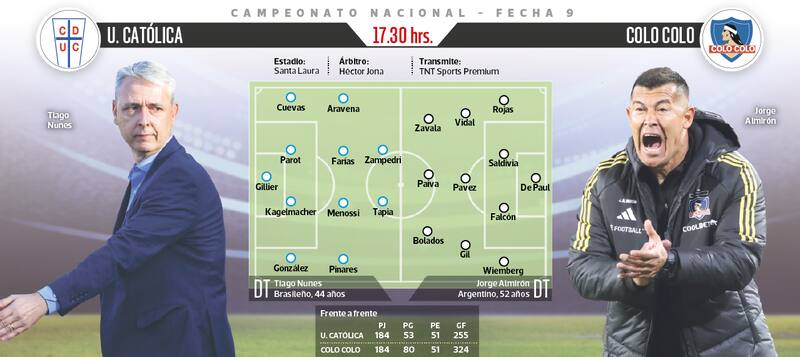 Santa Laura recibe la versión 185 del duelo entre Universidad Católica y Colo Colo, con un escenario muy distinto al que se presentaba hace menos de un mes: el alza de los cruzados, con Tiago Nunes, y las dudas del Cacique de Jorge Almirón.