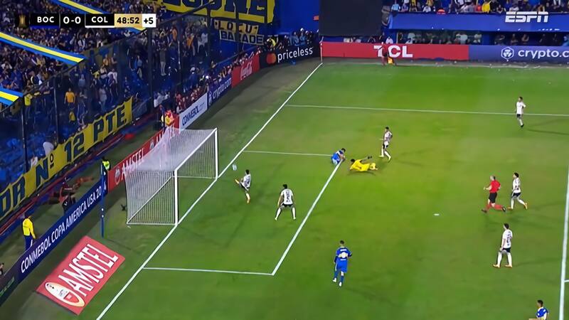 Se jugaban los descuentos del primer tiempo entre Boca Juniors y Colo Colo, en La Bombonera. Ambos equipos empataban sin goles. El duelo era parejo. Sin embargo, en la última jugada, parecía que los xeneizes lograrían abrir la cuenta. Centro desde la derecha de Marcelo Weigandt, perfecto pivoteo de Darío Benedetto. La pelota le queda servida a Óscar Romero. El paraguayo define ante la salida del arquero Brayan Cortés, que nada puede hacer para contener el remate. Es gol de Boca... hasta que aparece Alan Saldivia.