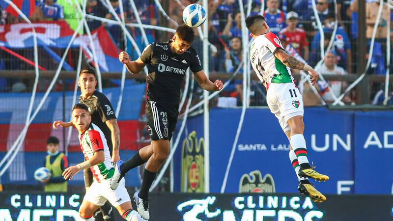 Para los árabes tampoco se trataba de un duelo más. Después de un arranque prometedor, el elenco de Costas se ha ido cayendo pese a tener un buen plantel. En los 11′, abrieron la cuenta con un cabezazo de Bryan Carrasco. Sin embargo, el tanto fue anulado tras el chequeo en el VAR, debido a una posición de adelanto en el arranque de la jugada. Sin ser extremadamente superior a la U, Palestino logró generar las opciones de gol más claras del lapso inicial. Por contraparte, el local tenía a Ronnie Fernández sin compañía, luchando con los centrales rivales. En los 20′, un cabezazo del ex Wanderers se fue desviado por poco.