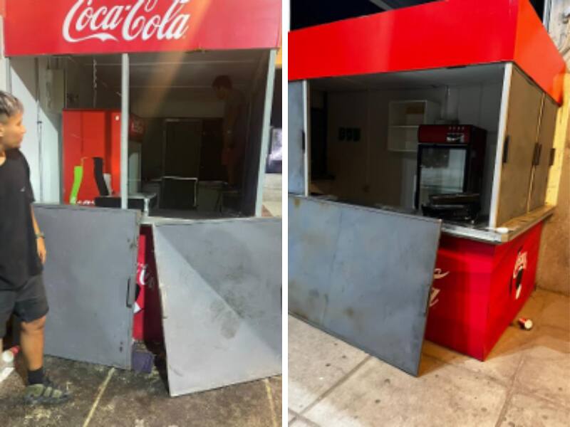 Los delincuentes sustrajeron un mantenedor de hamburguesas, además de romper los vidrios del lugar. También se robaron 300 unidades de papas fritas (20 cajas), 720 latas de bebidas de 350 cc., 120 unidades de Rolls, 192 botellas de agua, 24 unidades de bebidas isotónicas y 48 energéticas.