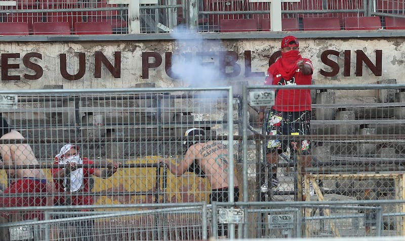 21.10 hrs.: hinchas de Colo Colo proceden a encender fuego a las butacas de galería norte.