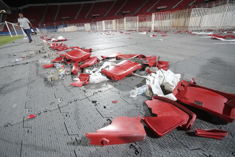 El balance de los destrozos fue lapidario. “300 butacas y sus respectivos soportes resultaron dañados, tanto por la acción del fuego provocado intencionalmente tras la detención del encuentro y por roturas intencionales de los asientos, los que fueron utilizados como proyectiles. Se procederá a su extracción, provisión y reemplazo”, detalló el gobierno.