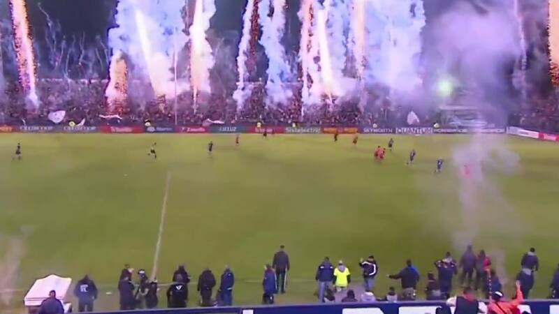 En los últimos minutos del encuentro también ocurrió una situación atípica. Cuando se jugaba el tiempo de descuento, la parcialidad local comenzó a lanzar una gran cantidad de fuegos artificiales. ¿El motivo? Festejar el vital triunfo, a pesar de que el duelo no había terminado.