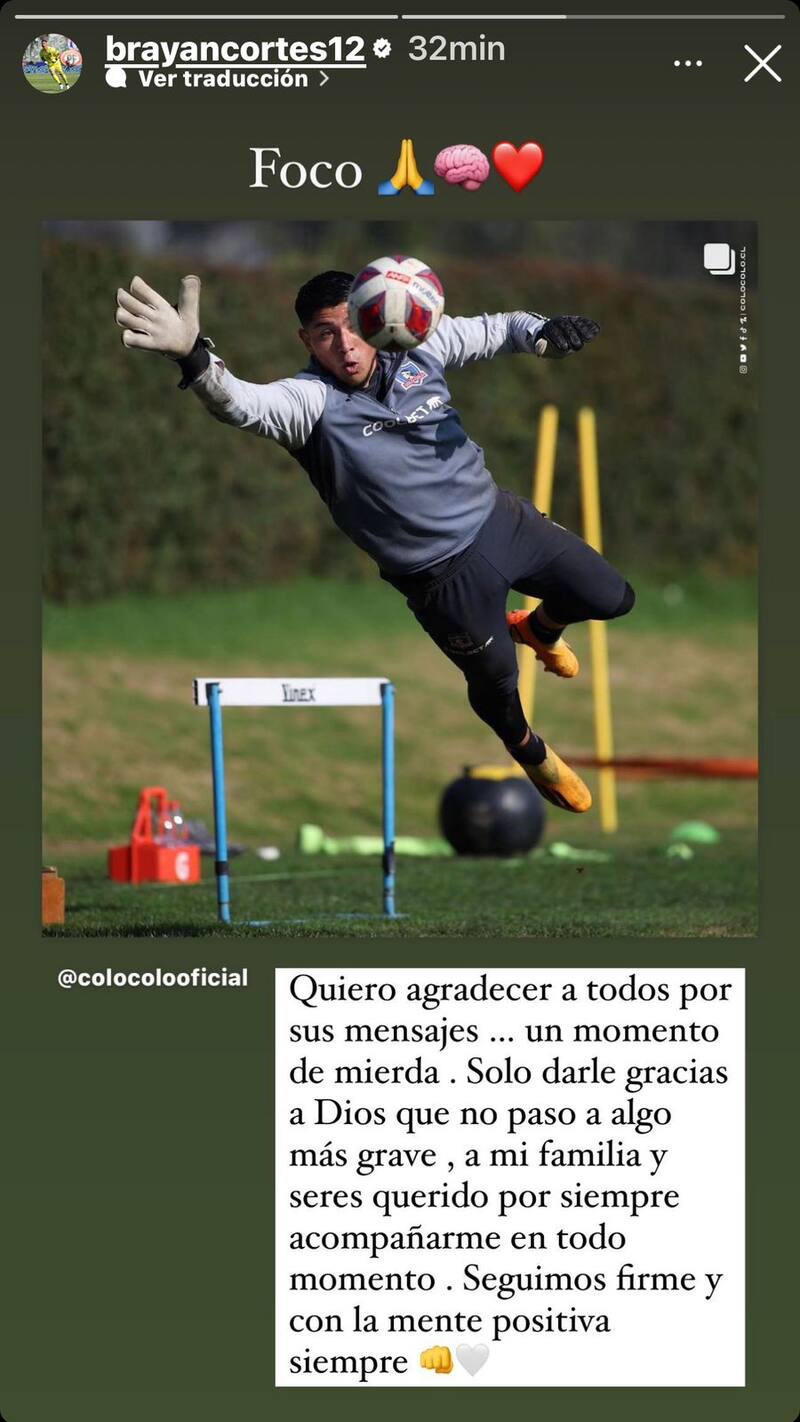 El portero se desahogó en redes sociales tras el episodio sufrido anoche en una estación de servicio en Calera de Tango. Pese a lo sucedido, el meta se presentó a entrenar con Colo Colo.