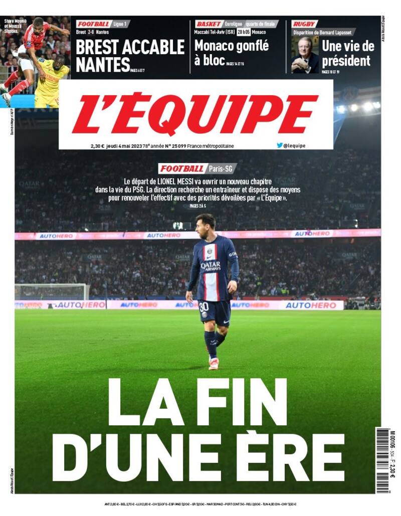 “El fin de una era”. Así fue el titular del diario L’Equipe del pasado jueves. El mensaje iba acompañado con una imagen de Lionel Messi vistiendo los colores del París Saint-Germain. El tránsito del crack argentino por el cuadro parisino tuvo un viraje repentino: del idilio al quiebre. Causó una gran repercusión cuando se conoció del castigo del PSG al argentino: multa y suspensión por dos semanas por un viaje no autorizado a Arabia Saudita. Lo que vino después, fue aún más extraño.