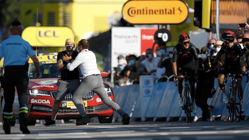 El ciclista polaco Michal Kwiatkowski logró la victoria en la 18ª etapa del Tour de Francia, este jueves con 175 kilómetros de recorrido entre Meribel y La Roche sur Foron, cruzando la meta abrazado su compañero en Ineos, el ecuatoriano Richard Carapaz. La dupla fue acompañada cerca de la meta por un fanático que saltó las rejas y se expuso en el camino de los autos, pero que fue controlado por la seguridad de la prueba.