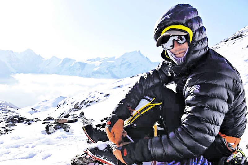JP, en su travesía por el Annapurna, el primer ochomil que conquistó, en 2017.[/caption]