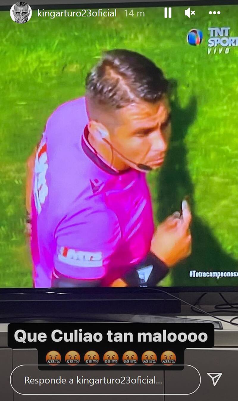 A través de sus historias de Instagram, el Rey colgó una foto e insultó al árbitro Cabero. “Qué c... más malo”, expuso en sus redes.