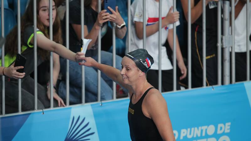 El Deportivo captó el momento en que el mandatario elogió a la gran referente de la natación chilena tras su participación en la final de los 800 metros en el Centro Acuático del Estadio Nacional.